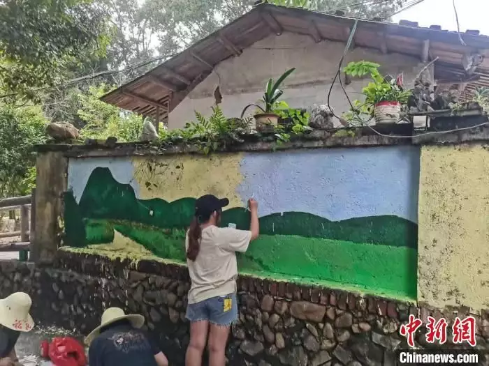 中新网三明8月8日电 (罗雨婷) 润色添彩、绿植焕新......走进福建省三明市三元区岩前镇万寿岩景区,当地民居五彩的墙绘和绿意盎然的庭院映入眼帘。色彩绚丽、通俗易懂的墙绘作品,以及花团锦簇、构思巧妙的园林景观设计,不仅让村容村貌焕然一新,还成为一道美丽的风景线。