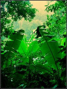 雨林里茂密的树木,在行光合作用时,能吸收二氧化碳 释放出大量的氧气,就像在地球上的一个大型空气清净机所以热带雨林有地球之肺的美名。