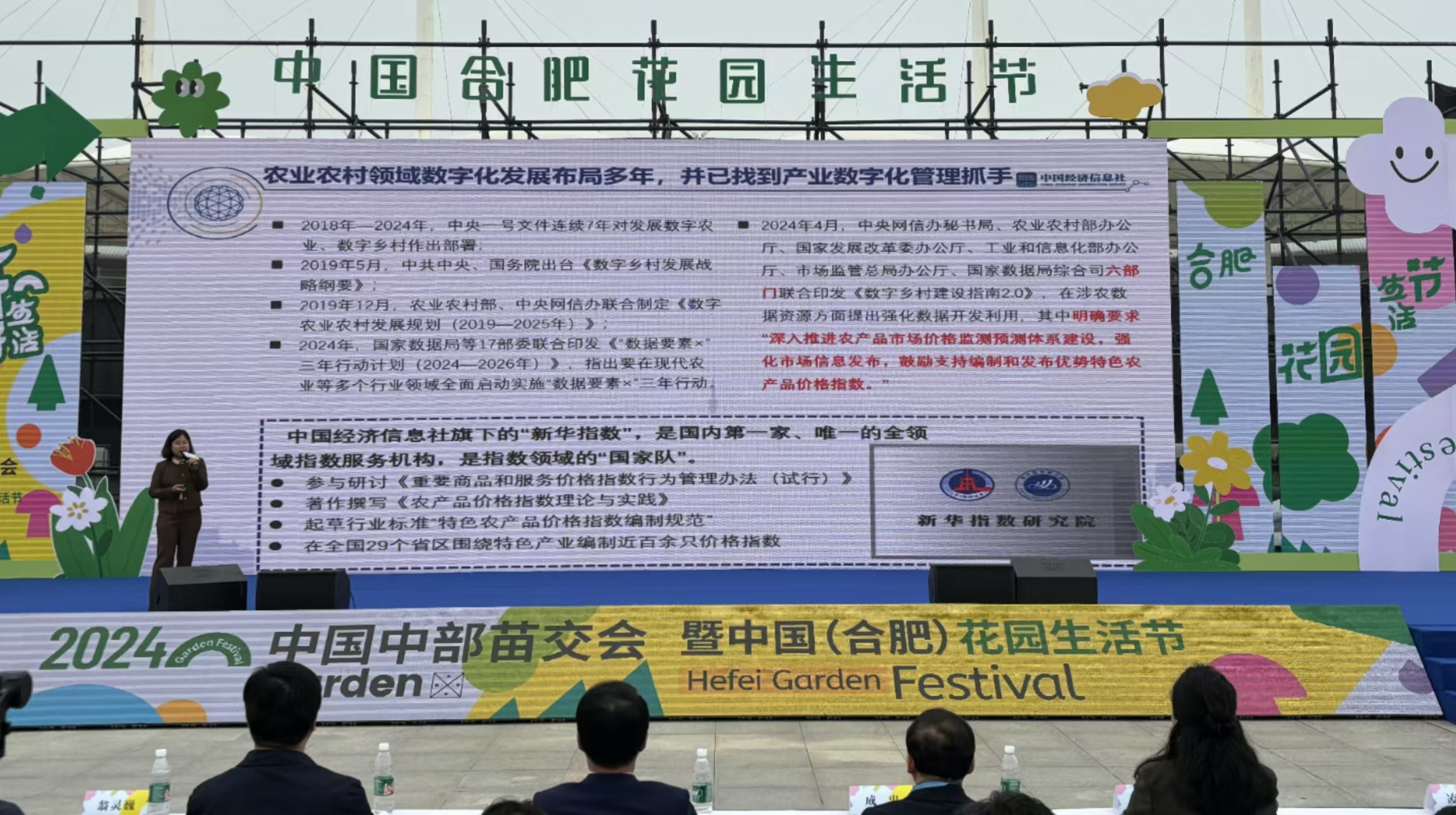 在本次开幕式上,新华·中国(合肥)苗木价格指数最新研究成果发布。据中国经济信息社新华农林指数部主任李水艳介绍,经过近3年的建设期,团队逐步建成了涵盖美丽城市、绿水青山、和美乡村建设主要树种的价格指数体系,同时从产地、销地两个维度,建立了一套涵盖省市县苗木主管部门、苗农苗企、专业花木市场等产业链市场主体在内的数据采集机制。