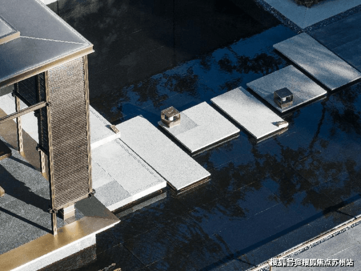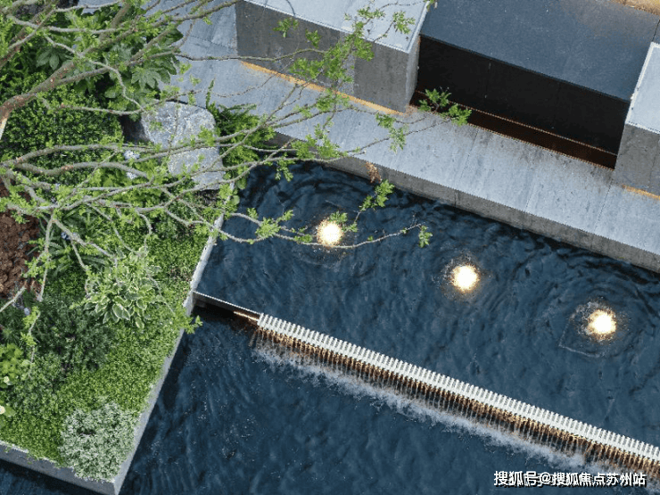 水系景观真是让人眼前一亮!项目将古代园林的精髓融入现代设计,借鉴古代园林的经典元素,如张园引水入园的巧妙构思,将一条长约200米、面积近1000㎡的灵动水系贯穿整个社区,