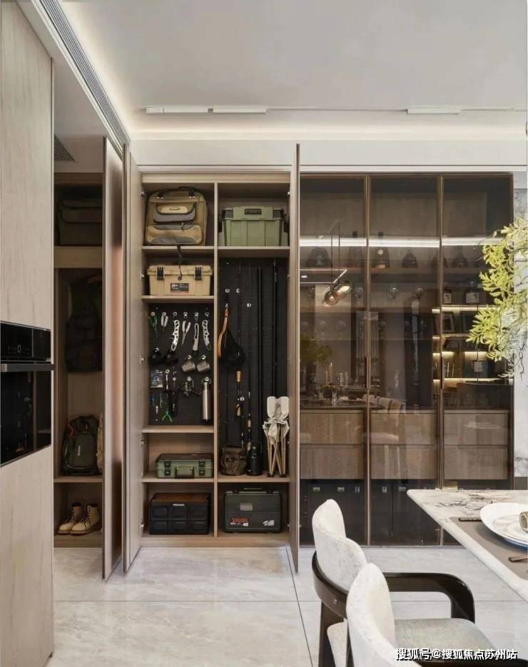 2.25mx2.4m的超体量玄关柜,为生活扩容,可容纳约56个20寸行李箱,而玄关柜、岛台、卫生间镜柜、主卧衣帽间等空间,把更多隐藏空间打造成超级收纳功能,让未来的生活井井有条。