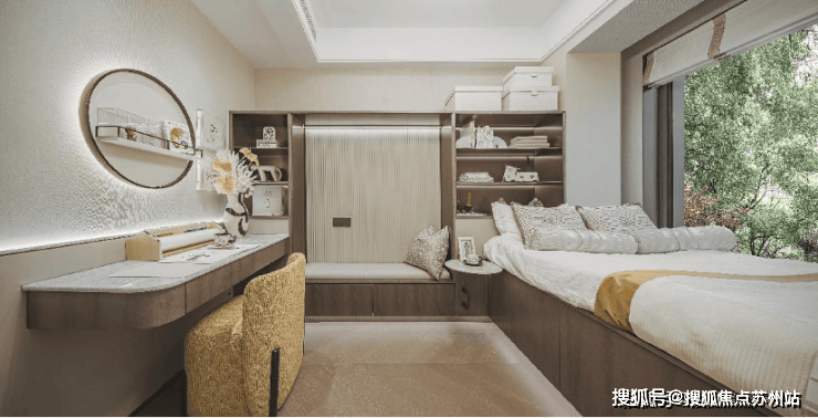 另外,主卧小家化的套房设计、270度的南向瞰景阳台、四开间朝南的开阔尺度。